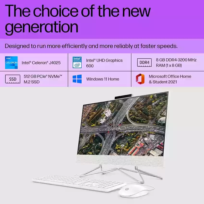 HP HP All-in-One 22-dd Celeron Dual Core (8 GB DDR4/500 GB/512 GB SSD/Windows 11 Home/21.5 Inch Screen/22-dd2986in) with MS Office (White)