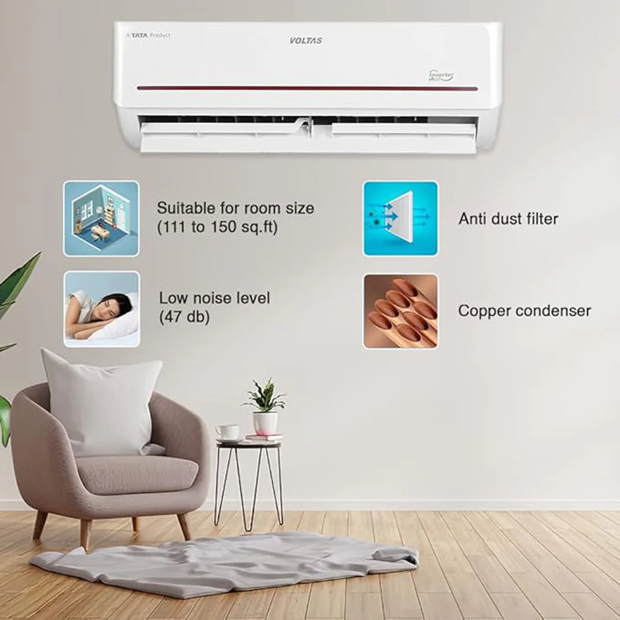Incorporating Auto-clean technology, the Voltas 183V Vectra Pride (4503445) 1.5 ton Split Inverter Air Conditioner ensures convenience by automatically cleaning the evaporator coil. Thus, this process removes moisture and inhibits the growth of bacteria and mould, which could be harmful.